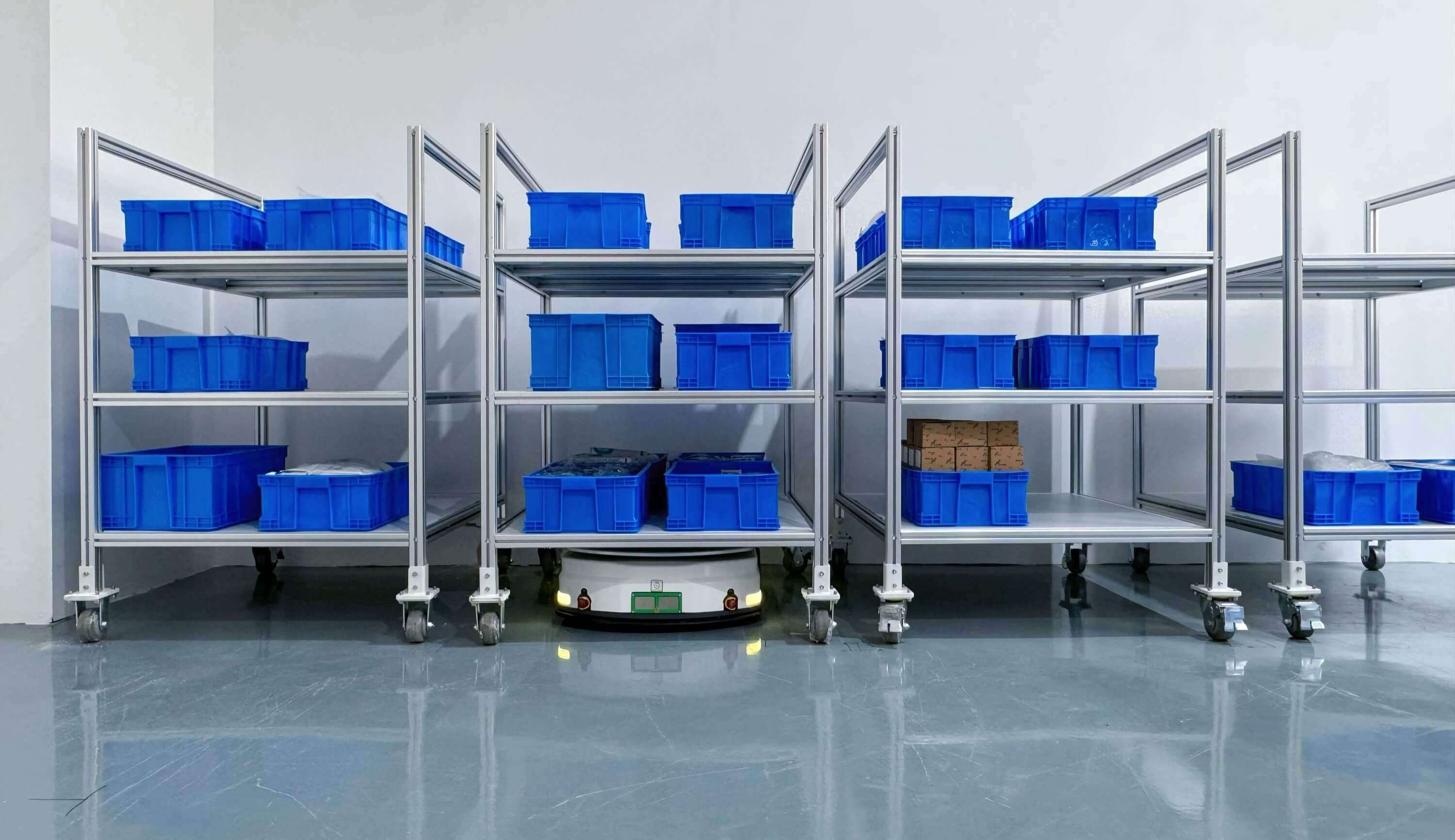 1.原材料与成品仓储: 高效完成搬运、上架、全流程自动化仓储。